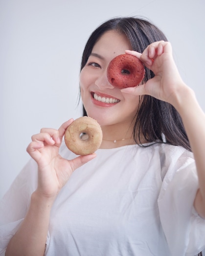 誰かと食事をする際は場を楽しみ食べるものを選びませんが、食品に含まれた栄養素が身体を作りますので、普段の食事は身体に負担をかけない(添加物が少ない)、栄養バランスを考えた食品を選ぶことを心がけています。前後の食事の予定を考えながら、キミボクドーナツで栄養バランスやカロリーを調整しています。