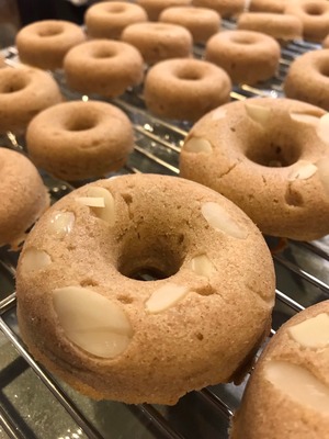 米粉(豊岡市産)、オーツミルク、バナナ、アーモンドプードル、ココナッツオイル、原料糖、アーモンドスライス、シナモン/ベーキングパウダー(アルミフリー)